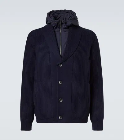 Virgin Wool Hybrid Button-up Cardigan In Blue