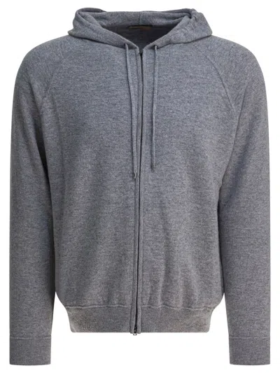 Hooded Sweatshirt With Zip In Grey