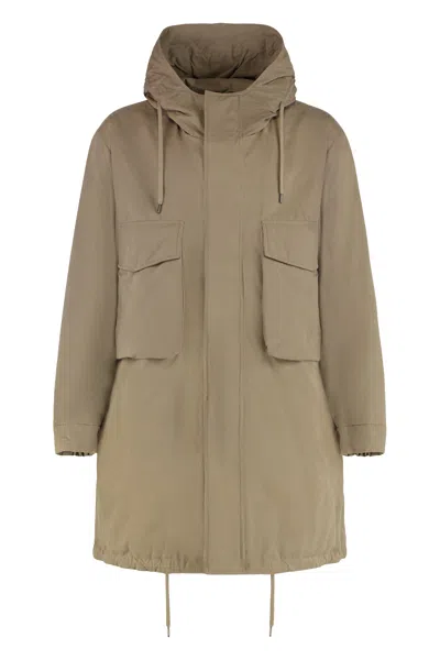 Technical Fabric Long Parka With Removable Hood And Down Padding In Brown