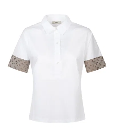 Long Sleeved Polo Jersey Crepe In White