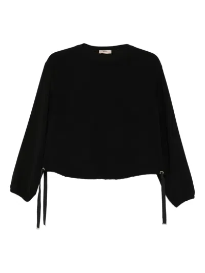 Resort Mock Neck Sweatshirt With Eco-fur Front In Black