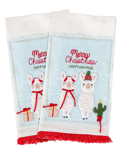 National Tree Company 18in Llama Merry Christmas Kitchen Towels Set In White
