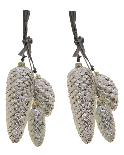 Set Of Two 8in Acorn Cluster Ornaments In White