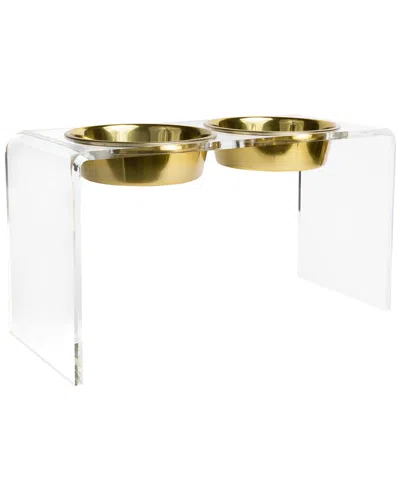 Small Clear Double Bowl Pet Feeder In Gold