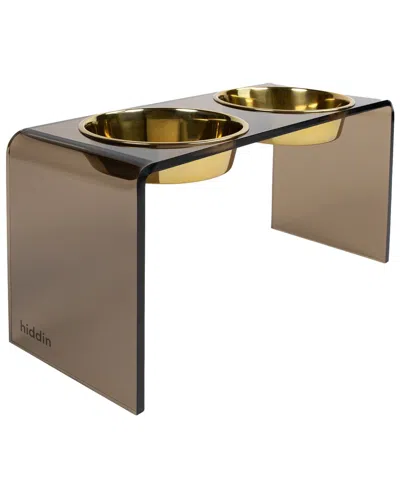 Medium Smoke Bronze Double Bowl Pet Feeder With Gold Bowls