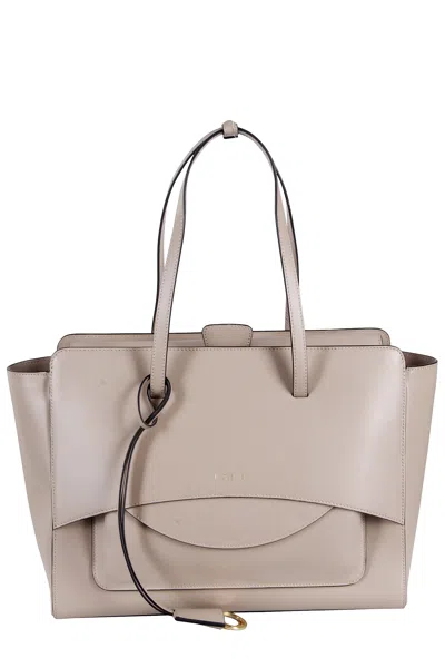 Structured Leather Shoulder Bag Flap Design In Neutral
