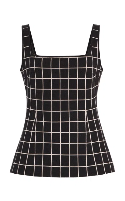 Exclusive Asher Checked Cotton-blend Knit Apron Top In Navy
