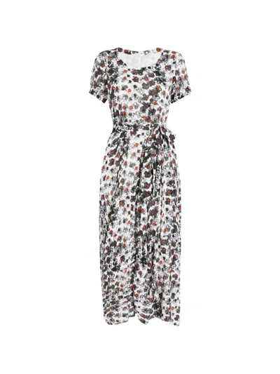 Inlay Floral-print Midi Dress In Gray