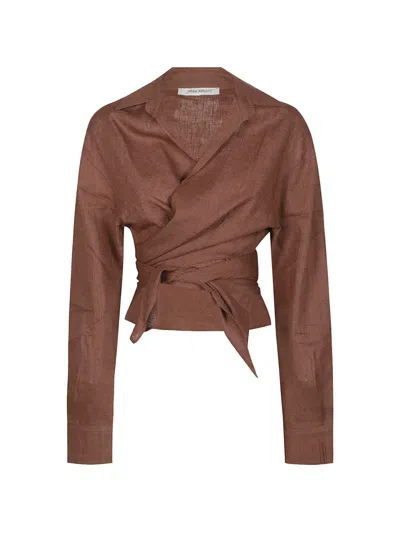 Cardigan Knitted Woman With Breaks And Bands In Burgundy
