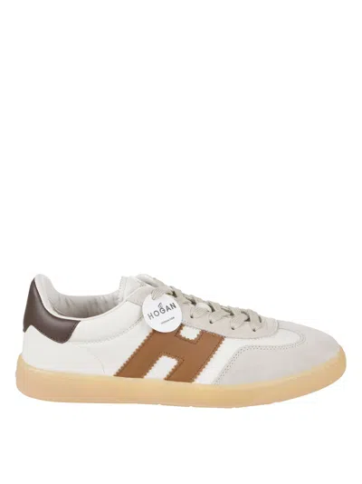White And Brown H-stripes Sneakers In Animal Print