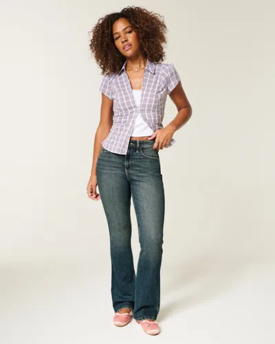 Low-rise Medium Wash Tab Waist Y2k Bootcut Jeans In Blue