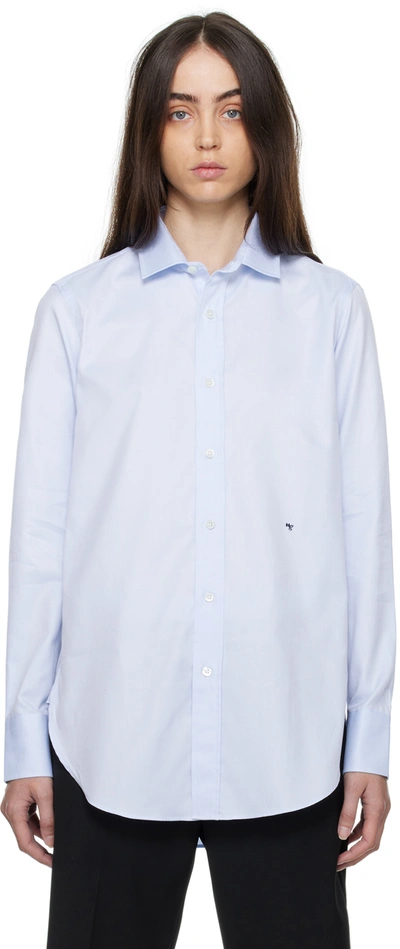 Blue Cropped Contrast Collar Shirt In Ticking Stripe