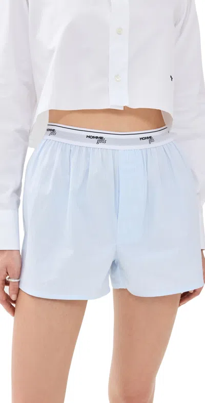 Striped Cotton Boxer Pajama Boy Shorts In Blue