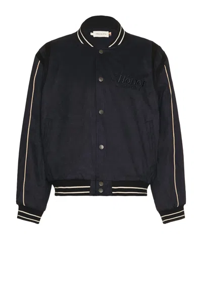 Oil Head Varsity Jacket In Black
