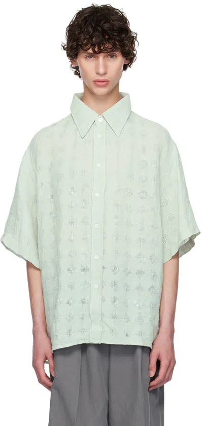 Green Linen Shirt In Ice Blue
