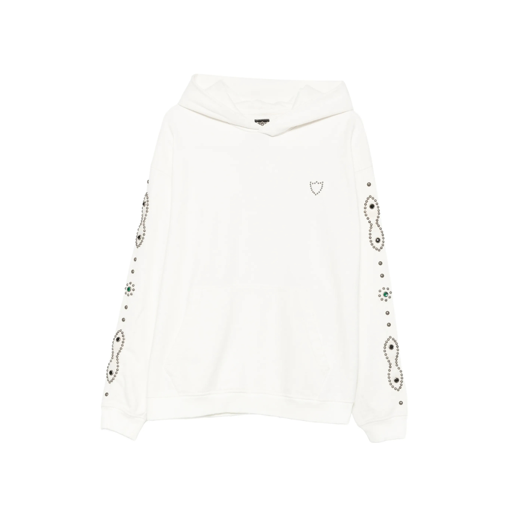 Moustache Stud-embellished Crystal-embellished Hoodie In White