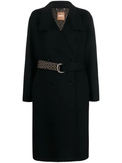 Boss Women Double-breasted Midi Coat In Black