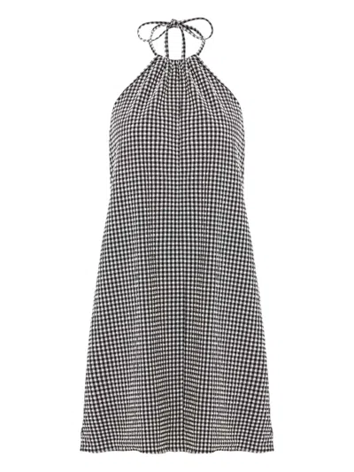 Checkered Halter Neck Sleeveless Knee-length Dress In Red