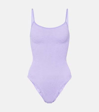 Domino Seersucker-weave Swimsuit In Metallic Cocoa