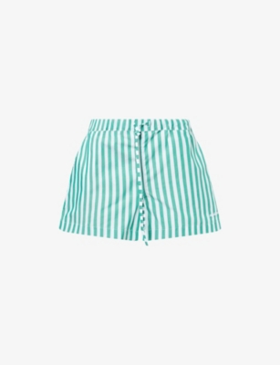 Womens Emerald Cabana Stripe Brand-embroidery Striped Cotton-poplin Shorts In Multi