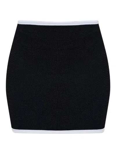 Ruffled Waffle And Seersucker Mini Skirt In Black