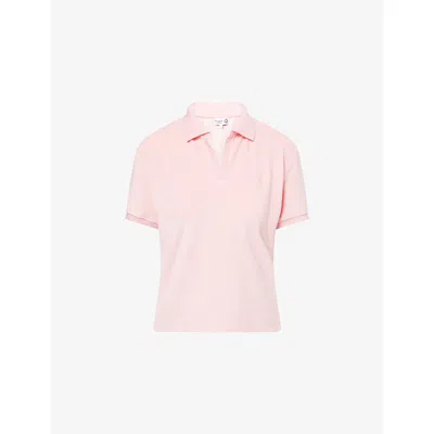 Womens Pink Towelling Short-sleeves Cotton-jersey Polo Shirt