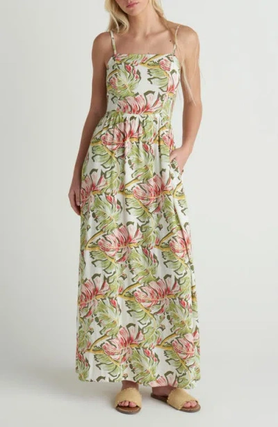 Malibu Leaf Print Maxi Dress In Green