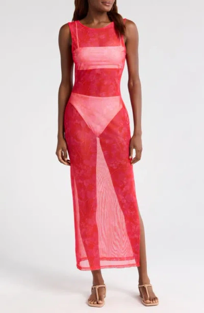 Grazi Sheer Mesh Cover-up Dress In Red Pink Baby Breath
