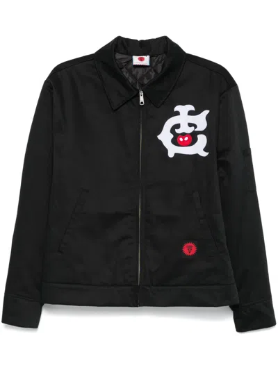 Mens Mid Wash Mascot Embroidered Denim Jacket In Blue
