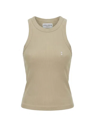 Star-embroidered Ribbed Tank Top In Gray