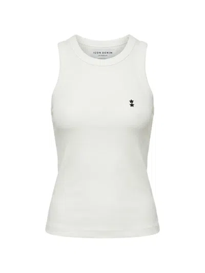Star-embroidered Ribbed Tank Top In White