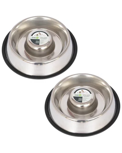 Set Of 2 Slow Feed Pet Bowls In Metallic