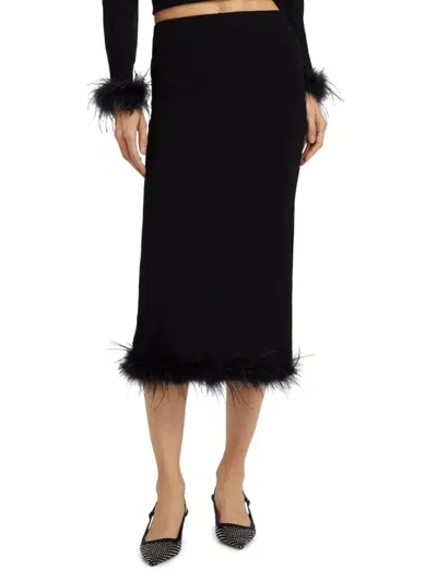 Women's Louise Feather-trim Wool Skirt In Black