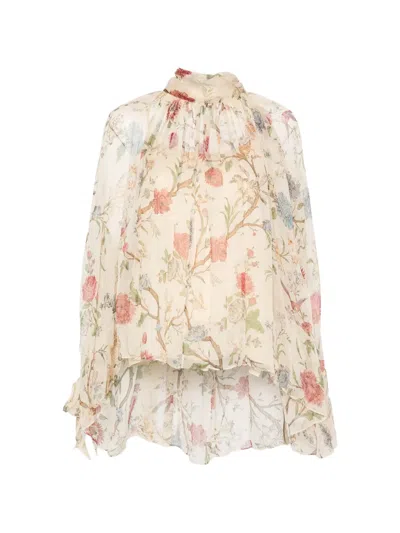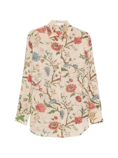Morris Crinkle Bat Floral-print Long-sleeve Shirt In Neutral