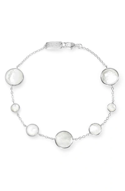 Sterling Silver Lollipop Mother-of-pearl & Clear Quartz Crystal Doublet Chain Bracelet