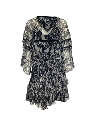 Pre-owned Tie-neck Long-sleeve Mini Dress In Gray