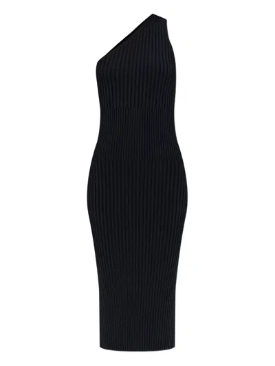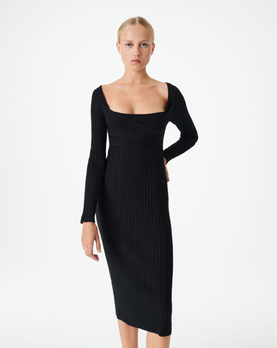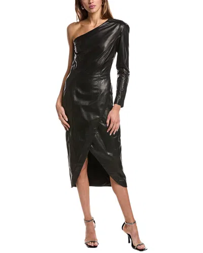 BETTI 露肩皮质紧胸衣式中长连衣裙