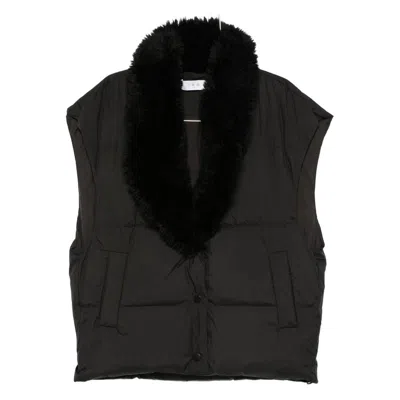 绗缝人造皮草领马甲