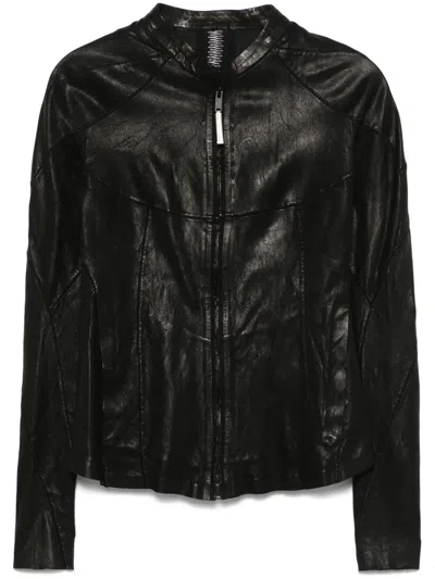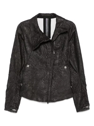 细褶效果皮夹克