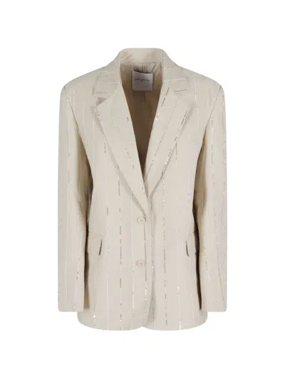 Sequin-embellished Striped Blazer In Neutral