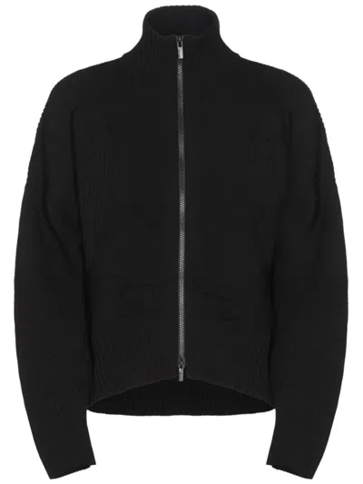 Long Sleeve Cardigan Featuring A Pleated Design In Black