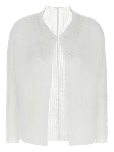 Sleek Pleats Cardigan In White