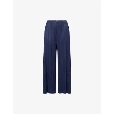 Womens Dark Navy Wide-leg Pleats Knitted Trousers In Blue