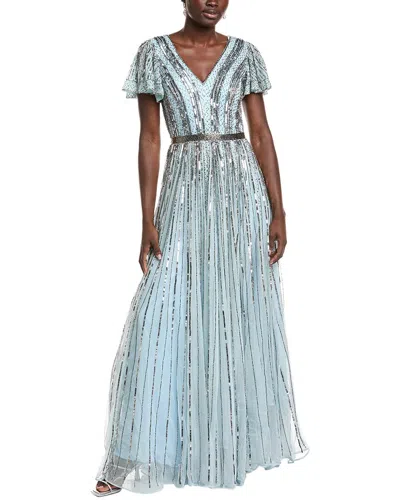 Sequin & Bead Embellished Gown In Blue