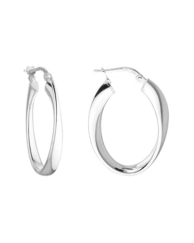 Italian Gold Silver Puffed Crossover Hoop Earrings In Metallic