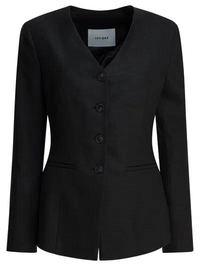Ivy Oak Black Wool Cashmere Blend Jacket In Blue