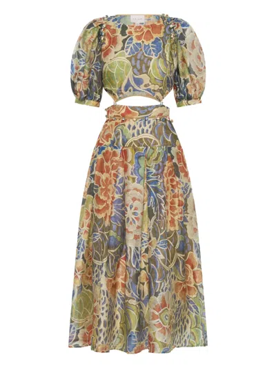 Floret Ruffled Floral-print Midi Dress In Pink