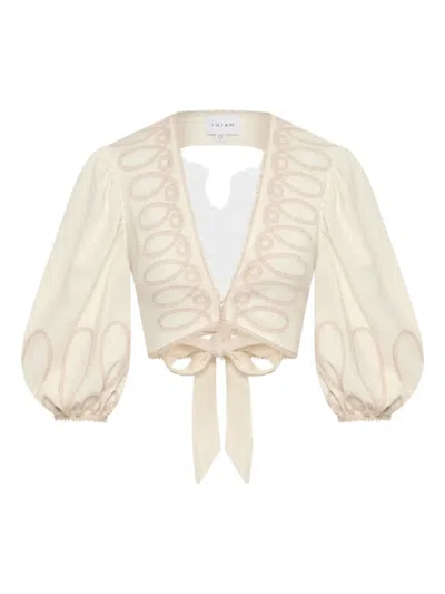 ALKALI 刺绣泡泡袖上衣