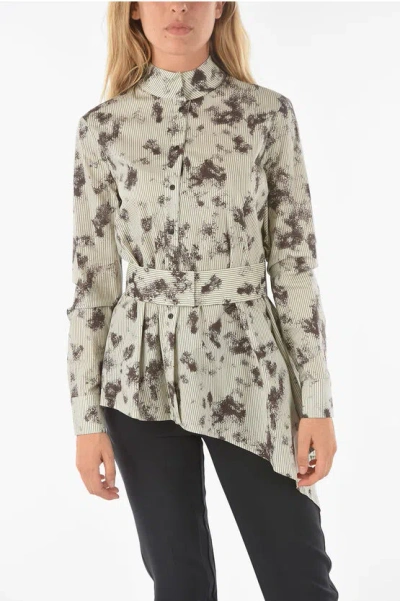 Mock-neck Sirio Shirt With Waist Belt In Neutral