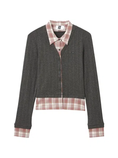 衬衫拼接开衫